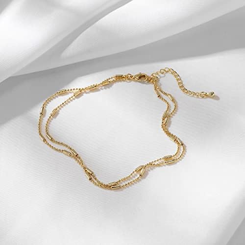 Pencros Dainty Layered Anklet,14K Gold Filled Cute Beads Satellite Chain Heart Boho Adjustable Anklets for Women Teen Girls